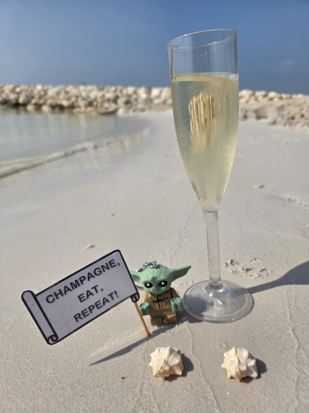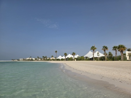 - Hotel je na samostatném ostrově, kde vůbec nic není, jen poušť. Z hotelu na hlavní bahrajnský ostrov jezdí loď, ale pouze párkrát denně a doveze vás do přístavu na jihu ostrova, kde je potřeba si sehnat vlastní dopravu (AKA ideálně si předem objednat taxi). Není tam žádná civilizace.