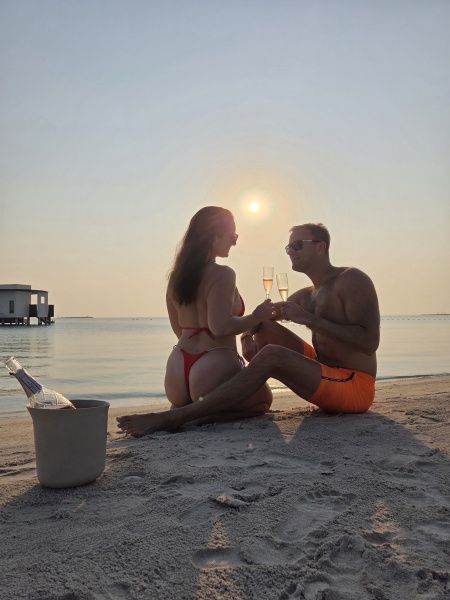 - Hotel je krásný, vypadá to tam trochu jak na Maledivách. Všude bílý jemný písek, palmy, čiré moře, plážové vilky s vlastním bazénem, vodní vily nad mořem, infinity bazén. Prostě hnus. :D :D :D