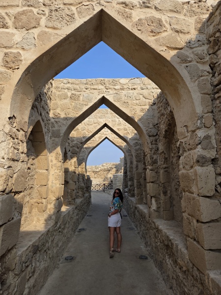 První zastávkou byla nejznámější pevnost ve městě Qal'at al-Bahrain - jediné bahrajnské UNESCO. Místo, o kterém se zmiňuje už Epos o Gilgamešovi, vybudovali Portugalci, kteří Bahrajn později kolonializovali. Není moc velká, uvnitř nepřístupná, takže se dá obejít dokola jen po hradbách asi za 20 minut.